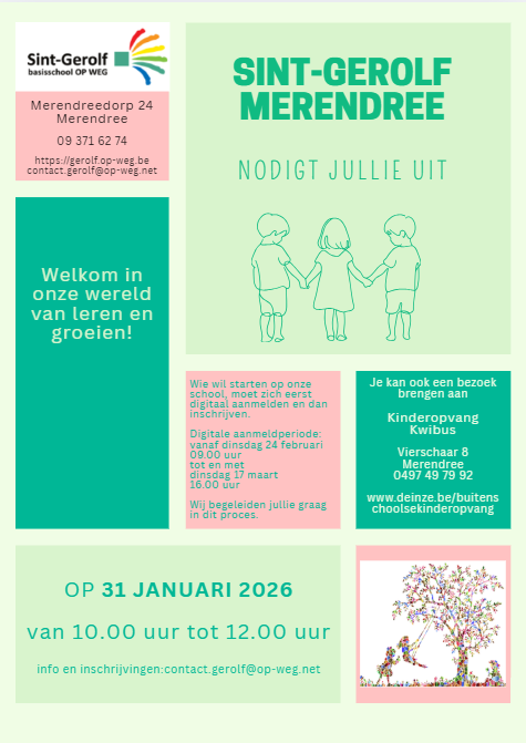 Deze opendeurdag is bedoeld voor alle nieuwe kleuters en leerlingen die zich willen inschrijven voor het schooljaar 2026-2027. Ook wanneer uw kindje geboren is in 2024, maar pas tijdens het schooljaar 2027-2028 zal starten, is het al aangewezen om langs te komen.