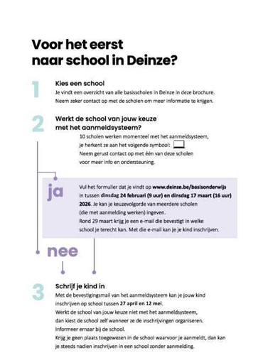 Alle kinderen (geboren in 2024 en vroeger) moeten worden aangemeld vanaf dinsdag 24 februari 2026 om 09u00 tot en met dinsdag 17 maart 2026 om 16u00.